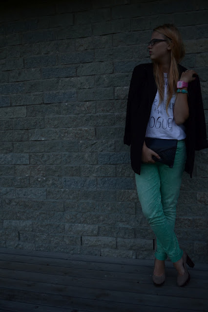 Üle väga pika aja, sai jälle paar pilti tehtud sellest, mis mul seljas. Kui ma neid aqua siniseid teksaseid Zaras esimest korda silmasin, teadsin, et pean endale soetama. Kuigi nüüd nad on veits suured mulle, ongi hea suvel neid kanda, sest et ei hakka palav. Kuigi praegu ma üldse üritan pükse vältida, sest need kuidagi ahistavad mind ning kleidi või seelikuga on kõvasti parem olla. Viimasel ajal olen hakanud ka eelistama kontsi madalatele jalanõudele. Selle tõttu mu jalad kannatavad päris korralikult, aga ma avastasin suurepärase haavaliimi, mis loob nahale kaitse kihi ning kingad ei hõõru enam.